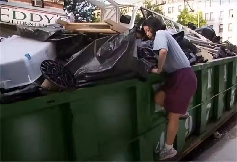 家裡招待客人用的沙發是Kate大學畢業時從校外撿回來的,已經伴隨她生活了十多年,歷經幾次搬家,Kate幾乎走到哪裡都帶著它。如果有朋友過來借宿,這張沙發也可以充當臨時客床。 至於Kate Hashimoto自己睡覺的床簡直不能稱之為床,她直接把別人不要的瑜伽墊撿回來疊在一起,再鋪上一層床單,每天晚上都睡在瑜伽墊上。在Kate本人看來,這樣的「床」對她而言完全足夠,如果去家具店買一張好幾百美金的床,「簡直太離譜了!」 (Kate Hashimoto展示自己的床)