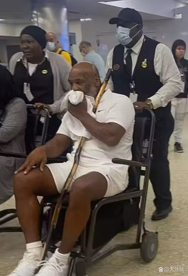 拳王泰森亮相了,他出現在邁阿密國際機場的航站樓,56歲的泰森看上去情況很不好,身體虛弱。 泰森在採訪中表示,他即將死去,引發了外界的強烈關注。 泰森患有「坐骨神經痛發作」,這是一種與下背部有關的疾病,泰森在上個月被拍到了要拄著拐杖來行動,這一次,泰森又被拍到只能坐著輪椅……他已經無法自己行走了。