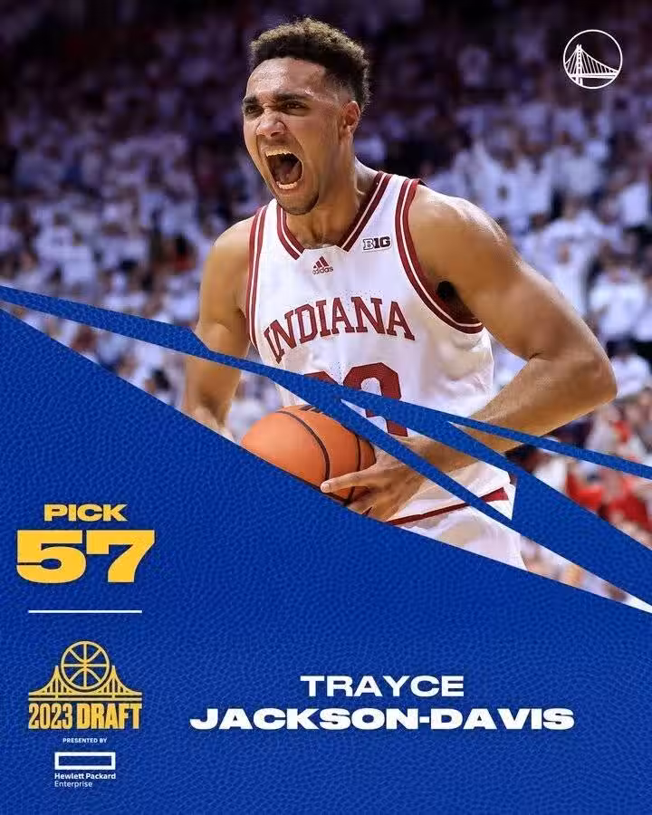 勇士用次輪57號簽選中了大前鋒特雷西-傑克遜-戴維斯。傑克遜-戴維斯身高2米03,臂展2米16,大四賽季場均20.9分10.8籃板2.9蓋帽。他的技術成熟,球風勁爆,不過缺乏射程。由於是大齡新秀,所以傑克遜-戴維斯的上限不高,不過他有望成為即戰力,夏聯的表現同樣值得期待。