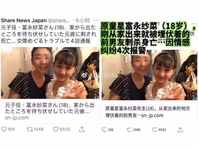 29日上午10點多,日本橫濱市警方接獲一名女性報案,對方表示:「我的女兒在停車場滿身是血!」警方也趕緊前往現場處理,受害者立刻被送往醫院,最終仍不治。隨後行兇殺人的22歲男子伊藤龍稀在下午1點左右,拿著刀子向警方自首,並供稱:「我當時在等富永走出來,然後拿刀埋伏刺了她。」