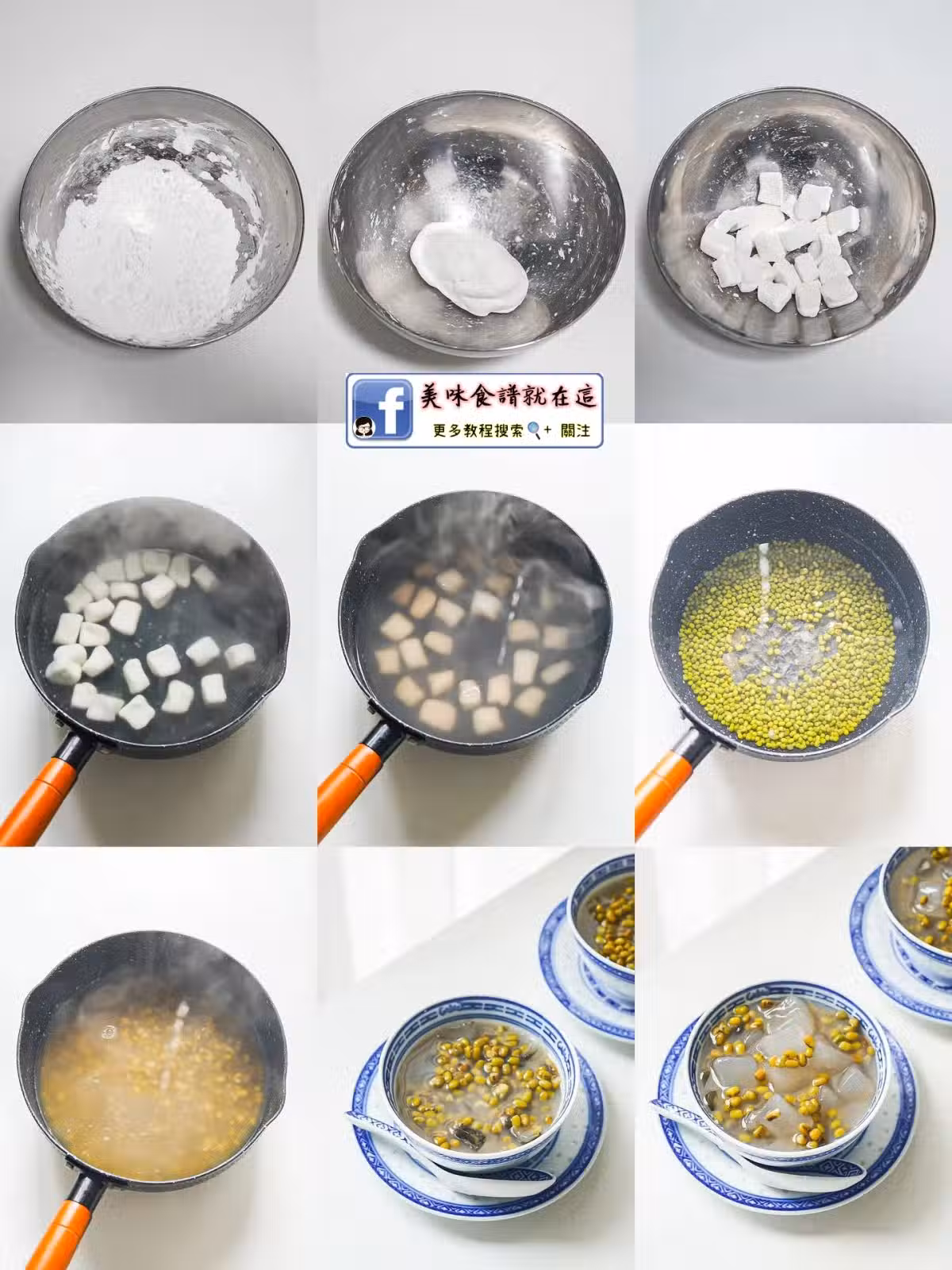 ▪️糖水碗里放入適量冰塊,倒入綠豆湯,擺上Q彈的阿達子就可以開吃啦。