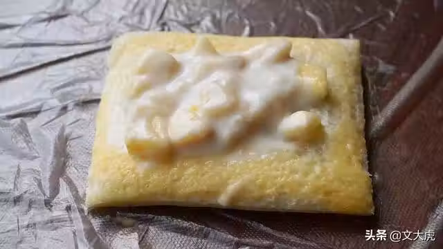 3、接著用另外一張麵包片蓋在上面,用手壓緊。