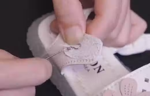 1,小朋友的涼鞋穿一段時間,上面的膠帶就會變得不粘了。這時候我們只要把文胸上的鉤子拆下來,然後縫在上面。這樣扣上之後很牢固,怎麼跑都不會掉了。