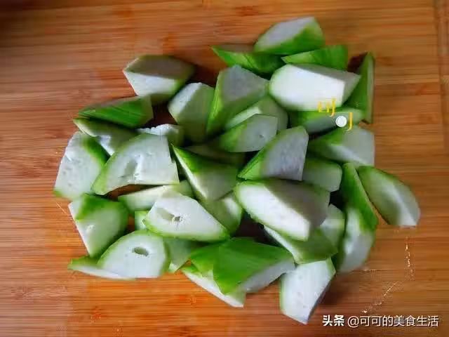 絲瓜去皮後切成滾刀塊備用。