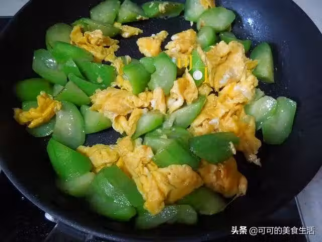 開蓋後加入雞蛋翻炒一下就可以了。碧綠金黃的絲瓜炒雞蛋做好了,你學會了嗎?