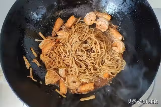最後出鍋之前將蝦頭撿出不要,麵條盛入盤子中,撒上一些蔥花即可。早晨少睡10分鐘,給孩子做上一盤炒麵,鮮美營養,越吃越聰明,越吃越喜歡。