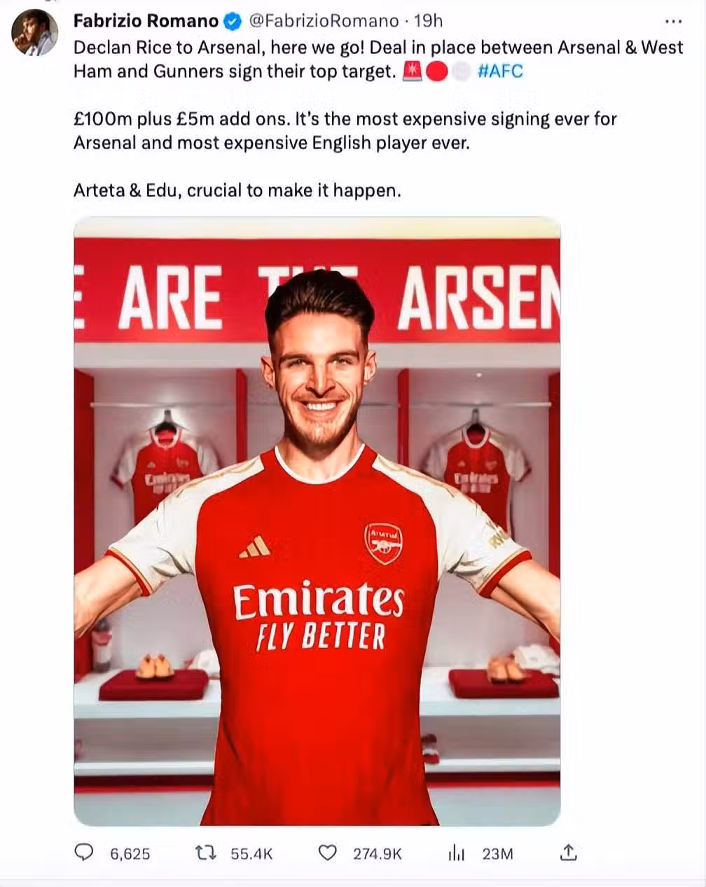 先是北京時間7月5日凌晨,已經傳得沸沸揚揚的轉會終於塵埃落定,阿森納付出了1.05億英鎊的代價(約1.25億歐元),從西漢姆聯簽下了英格蘭國腳賴斯。