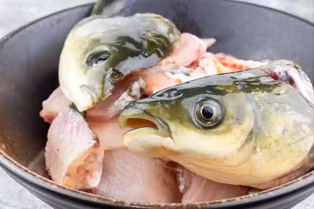 2、鍋內倒油,先把薑片爆香,然後放上魚頭,小火慢煎至金黃,接著加入沒過魚頭的開水,大火燒開之後,繼續煮5分鐘,然後放入豆腐,小火燉20分鐘左右,直至湯汁奶白。最後加上鹽、白鬍椒粉、撒上蔥花、香菜,出鍋。