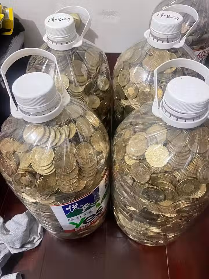 存了4大桶「50元硬幣」重達108公斤!總價值揭曉他驚訝:居然沒半枚是假的