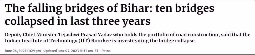 又塌了!印度本月又一座百億級別橋樑垮塌!一個邦三年塌了數座橋