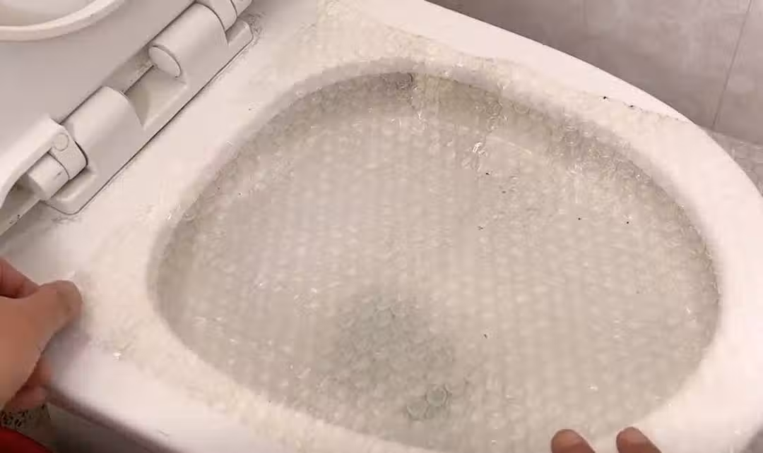 第一個妙用,疏通馬桶。衛生間馬桶時間用久了,難免會遇上堵了的情況,其實用氣泡墊就能夠輕松解決。把氣泡墊蓋在馬桶口上,周圍用膠帶密封起來,周圍不要漏氣。