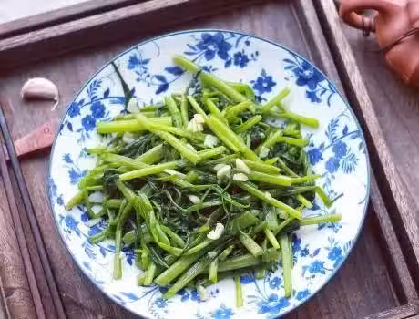 2、炒空心菜的時間一定不能長,整個過程不超過2分鐘,否則空心菜的口感便會大打折扣,因為空心菜本就比較清香,所以無需添加過多的調味料;
