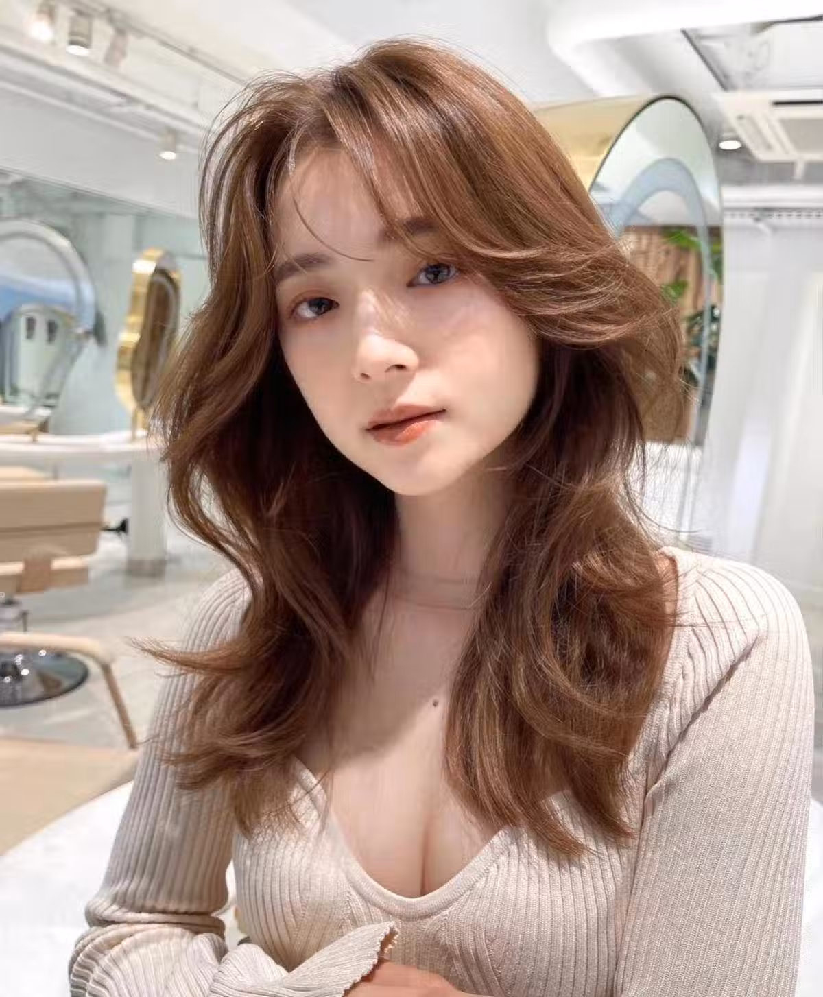 就拿這款髮型當例子,主要在頭髮的下半部分燙出了卷度,整體發絲的構造則是上直下彎的效果,避免從根源上損傷發質。這種頭髮需要運用尺寸偏大的卷發棒燙出來,適合那些一直採取長直發,但又很想燙卷發的女性進行過渡。