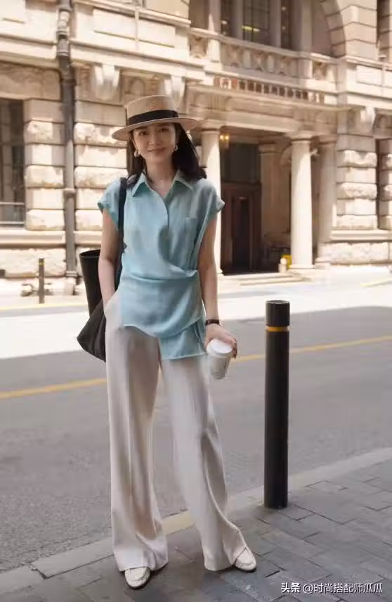 而白色系的褲子穿搭的時候,其實上衣選擇什麼樣的顏色還是比較關鍵的一部或者是黑色的話,那麼是趨向於簡約又顯大氣的質感,在職場當中非常推薦大家使用這樣的組合。