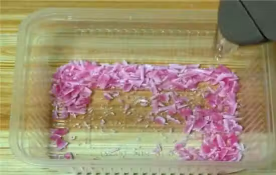接著在裡面加入溫水,再倒入小蘇打,花露水,攪拌均勻,如果時間充分的話,最好浸泡一夜,讓肥皂能夠充分溶解於水中。如果要馬上使用,也最好讓肥皂能夠泡的完全發白,這樣才好溶解。