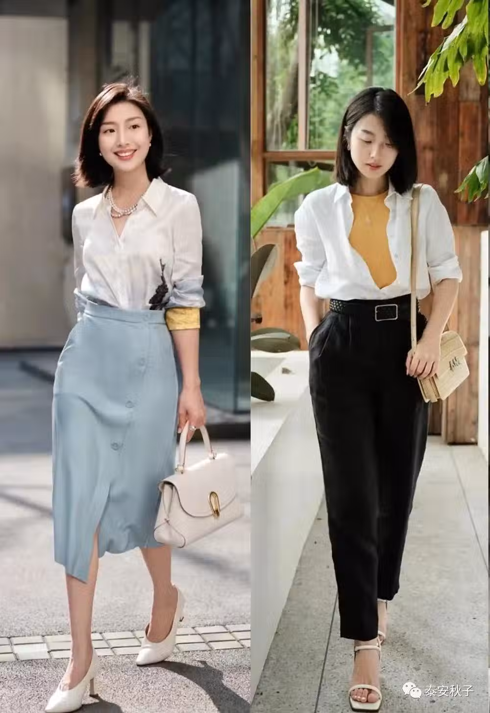 不管是具有清新氣息的霧霾藍色絲綢裙,還是顯得成熟酷颯的小黑褲,都能與襯衫單品相互結合,融合出更簡約養眼的效果。