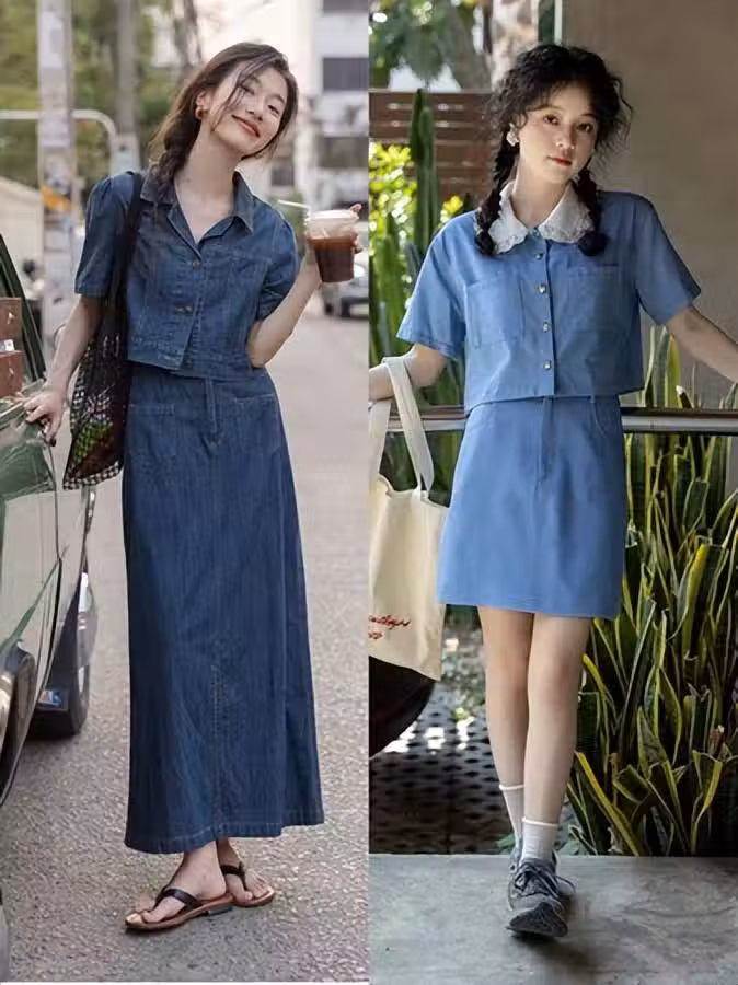 襯衫搭配短褲或者是半身裙,這樣用同樣面料,同樣顏色的單品去搭配,就可以保持統一性,降低搭配難度。