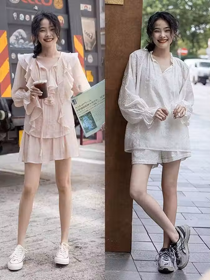 選擇套裝還要注重面料,一般來說我們的夏天穿的衣服面料都很薄,但同時也要注意不能太薄,太廉價,這樣穿在身上不僅會暴露身材問題,也會產生俗氣感。
