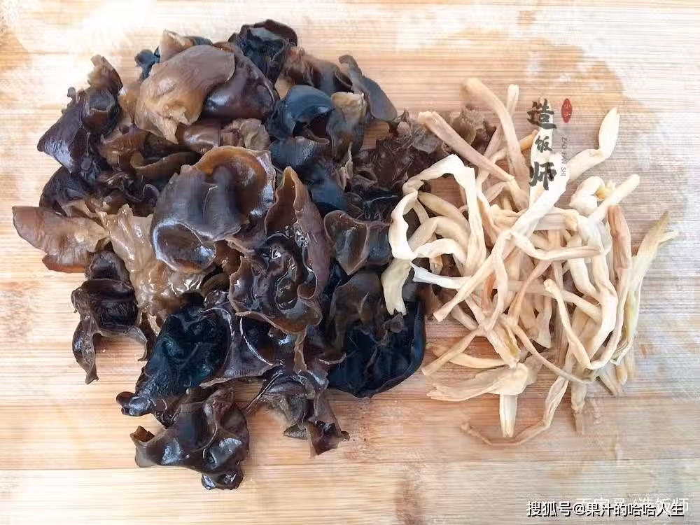 第八步:再放入黑木耳翻炒片刻。