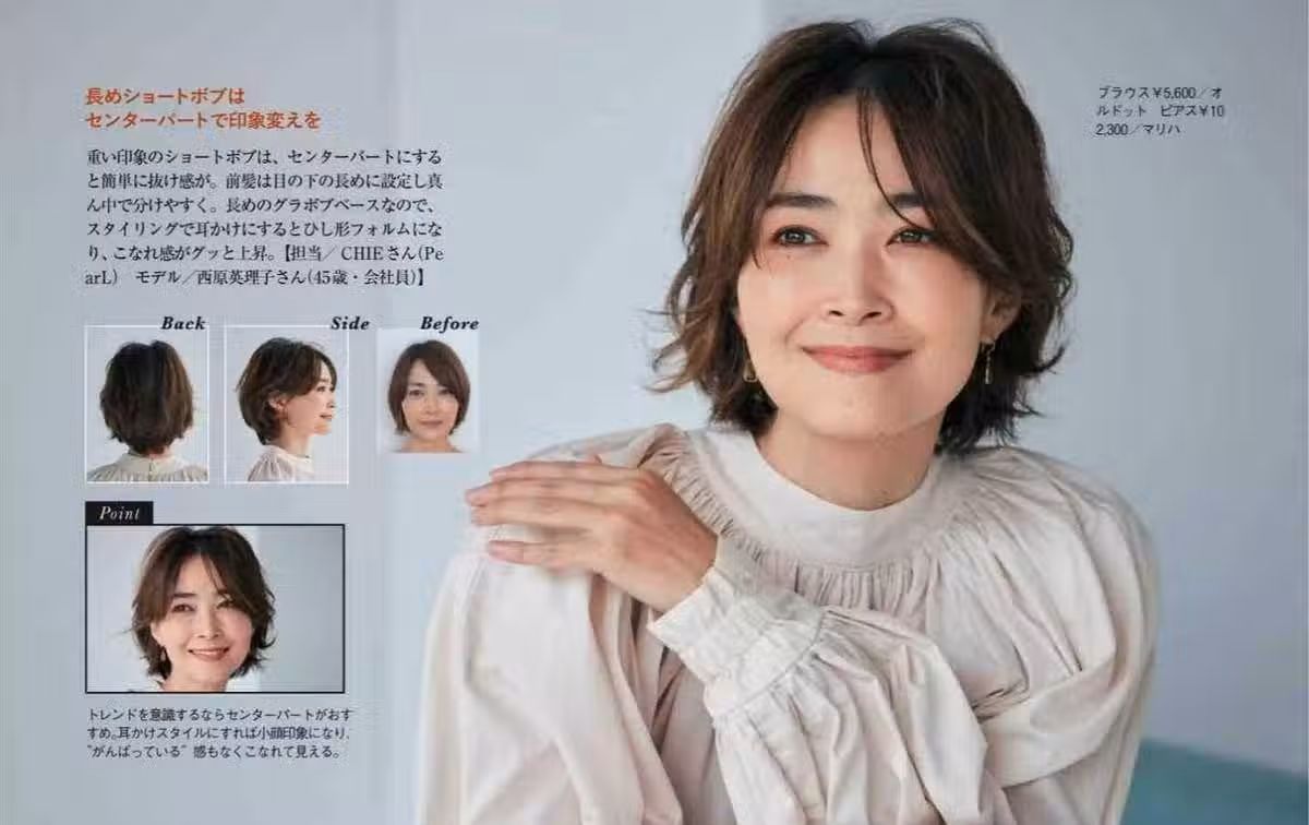 這款短發看著輕盈一些,讓側面輪廓得以完美的展現。髮尾的發絲則貼合在頸部的區域,由此讓頭頂的輪廓變得十分飽滿且顯得很有弧度。