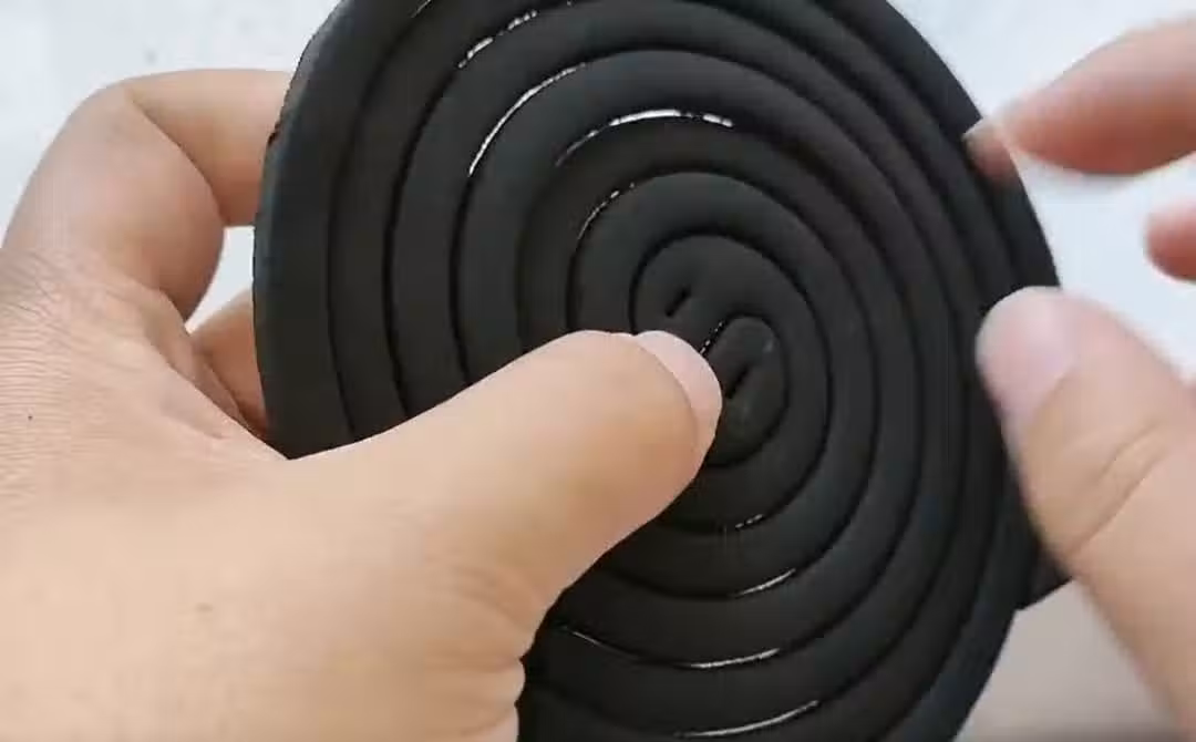 像這樣拍打一小會兒之後,這個蚊香圈就會自動變松,直到完全變松之後,緊接著我們再把中間的這個圈給它摳出來,這兩個蚊香立馬就被分開了。