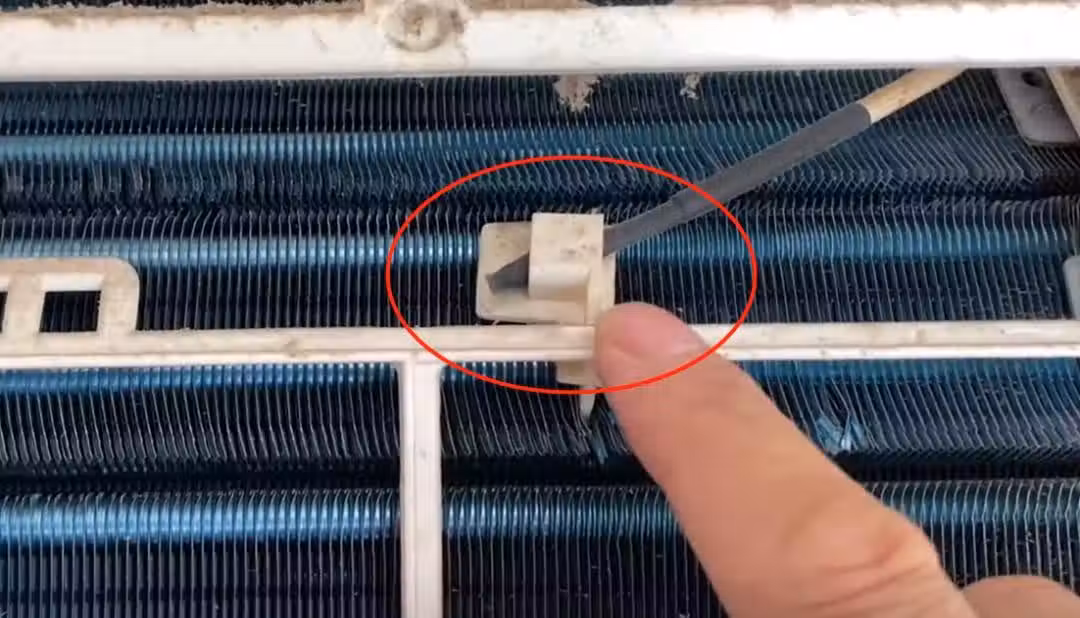 我們來看一下,這是空調的感溫器,在清洗空調前,我們需要把感溫器輕輕的挪動一下位置,免得弄壞。