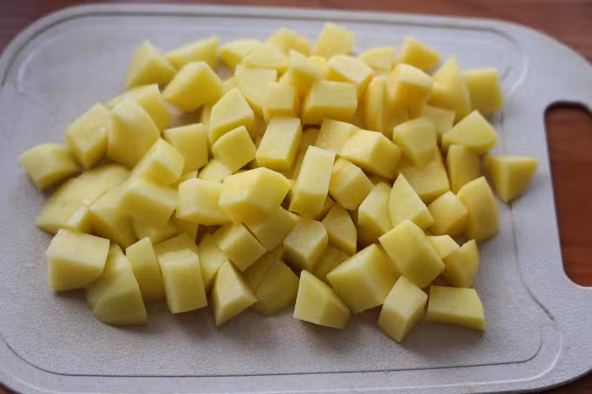 3、鍋中燒開水,把土豆加進去焯水1-2分鐘左右,大概土豆8成熟;撈出來瀝干水分;