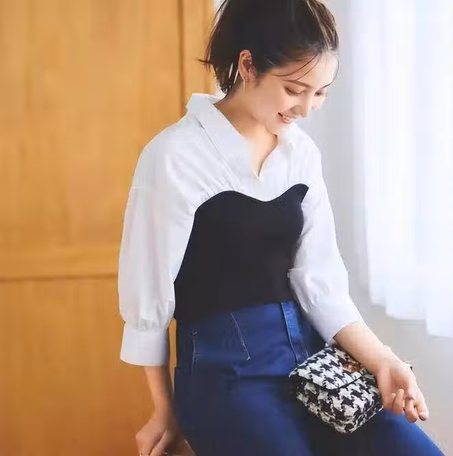 苗條的線條感,還需要藉助修身襯衫的卡腰細節來強化。因為衣擺齊腰較短,所以卡腰的位置也比一般的廓形襯衫更高,更精準的幫你縮短上半身、拉長下半身比例。小個子女生真的很受用哦!