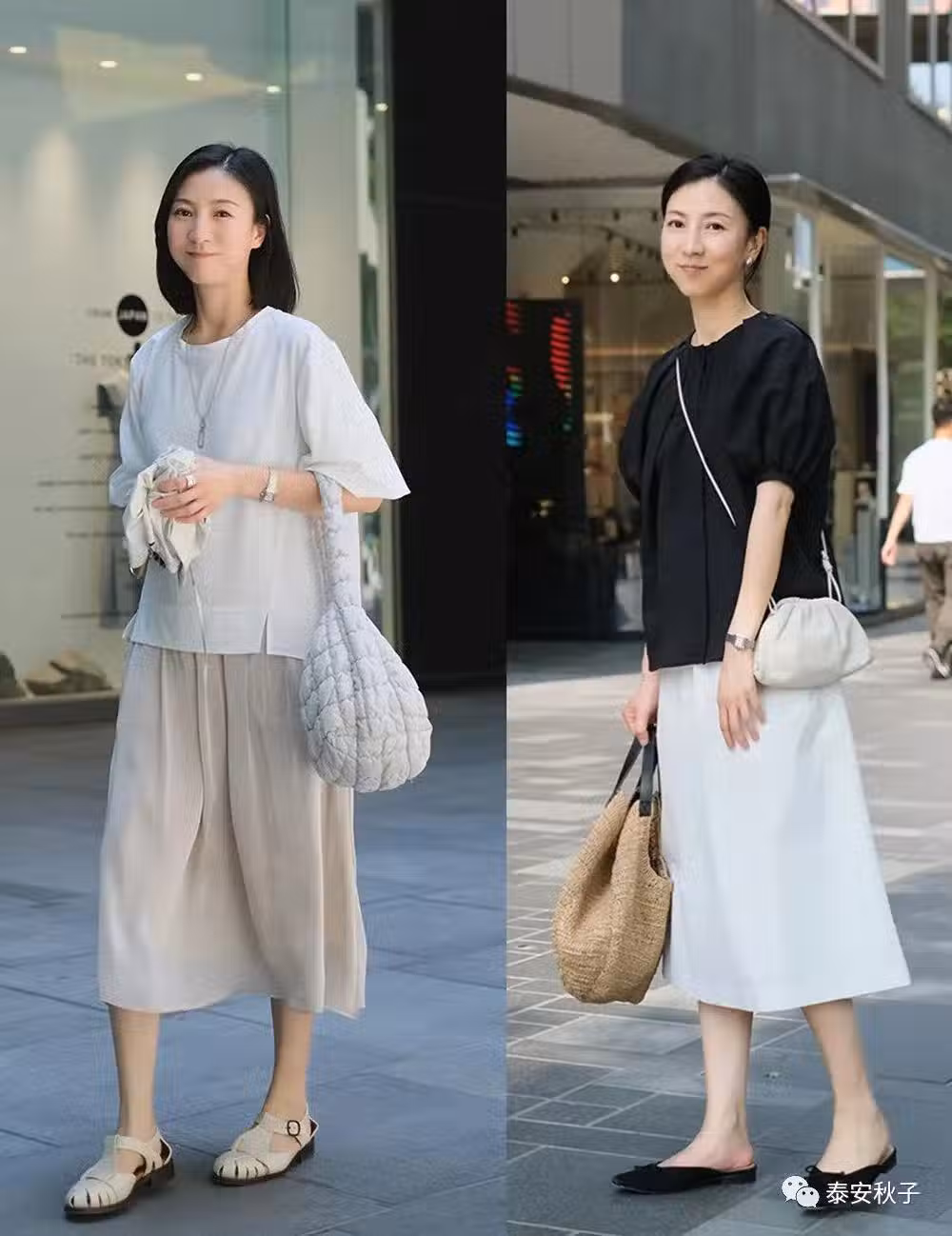 這種版型的小衫,既能對我們的身形,進行有效地修飾。又可以在半身裙的加持下,凸顯出成熟女人的女人味、與隨性從容的氣韻。