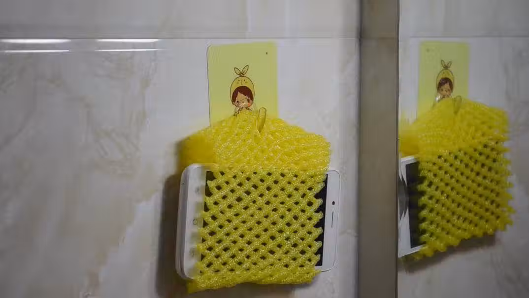 在生活中,相信有不少的人像我一樣不管洗澡還是洗臉會將手機帶進洗手間。這時候,手機如果位置放得不好就會濺到水,後果不堪設想。遇到這樣的問題,只需一個水果網套就能輕鬆解決了。先準備一個水果網套。再將水果網套橫著掛在洗手間的墻壁上面就可以了。水果網套掛在洗手間墻壁上的時候記得將水果網套中間位置掛在掛鉤上面。最後,我們將手機塞進這個水果網套裡面就可以將它懸掛在洗手間墻壁上了。既能防止手機濺水保護手機,而且還能節省洗手間裡的空間。