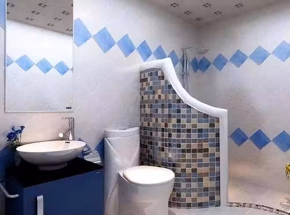 如果你覺得另一種浴簾的方法不好的話,還可以嘗試這種半墻隔斷的設計,用磚砌一道半人高的擋水墻就可以了,