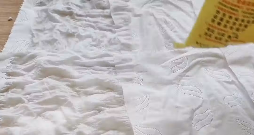 時間到了之後,我們把衛生紙接下來,緊接著我們在案板上面均勻的撒上食鹽,食鹽可以起到殺菌消毒的效果,而且食鹽是顆粒感的,塗上之後。