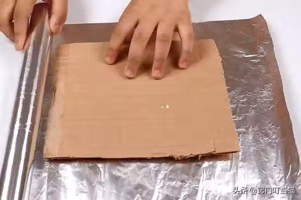 第二步:然後將剪下來的鋁箔紙把裡面的硬紙板包裹住,邊角處可以用雙面膠來封住,這樣看起來也更美觀一點,這樣一個WiFi信號增強工具就做好了,我們來試下效果吧!