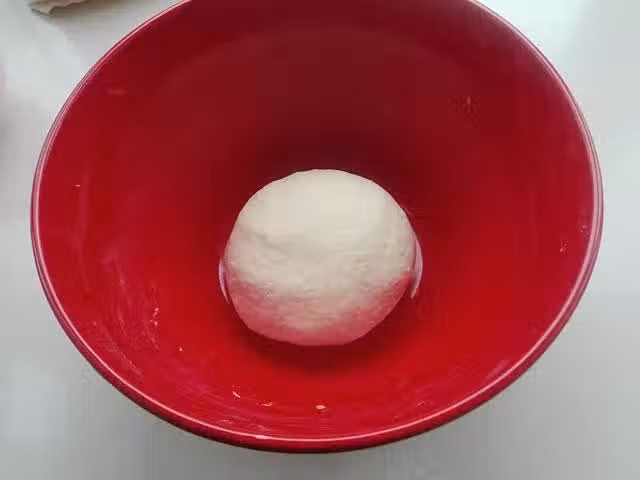 8、將麵糰發酵至約為原來麵糰的兩倍大,明顯有蜂窩狀,我因為時間原因,將其放置到冰箱進行了低溫冷藏發酵,這是發酵好的麵糰。