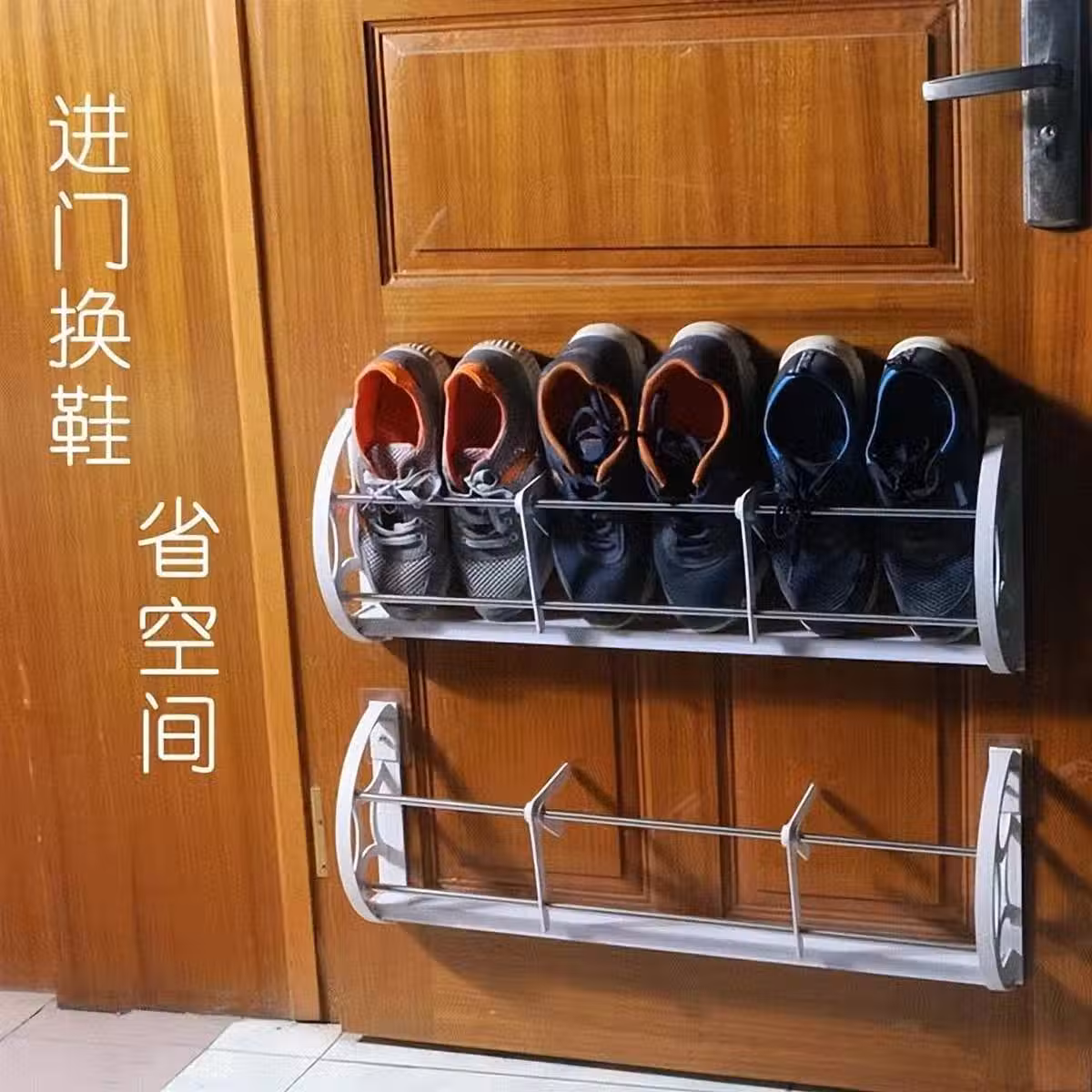 也可以用簡易的鞋子收納架,這樣設計也不會占用玄關的空間。