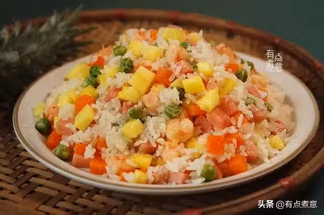 菠蘿中的膳食纖維和蛋白酶能夠促進腸道蠕動,幫助消化,開胃又解膩。今天分享一道我家孩子最喜歡吃菠蘿炒飯。菠蘿炒飯是粵菜的經典炒飯之一,用水果入菜,菠蘿的酸甜,再加上鮮嫩的蝦仁、配一點胡蘿蔔、青豆和火腿,顏色鮮艷,又香又開胃。