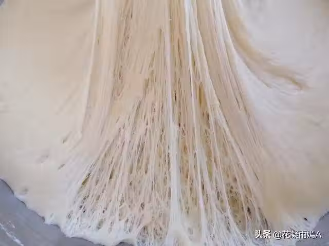 第四步:一個半小時麵糰就發酵好了,體積比原來大了兩倍多,用手撥開麵糰,裡邊都是蜂窩狀,這樣就可以來製作油條了。