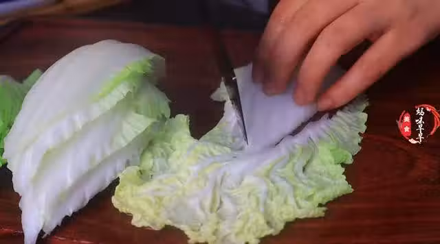 3、切好的白菜放入盆中,然後加入一勺鹽抓拌均勻,腌制5分鐘,把水分沙出來,這樣炒的時候熟得快,而且出水少。