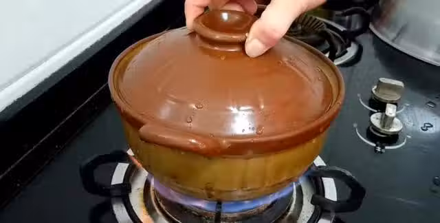 7:家裡沒有砂鍋的,就直接再蓋上鍋蓋燜,土豆加進去攪拌均勻後,再把全部食材連汁一起轉入砂鍋,蓋上鍋蓋,燒開後把它轉成中小火煲半個小時