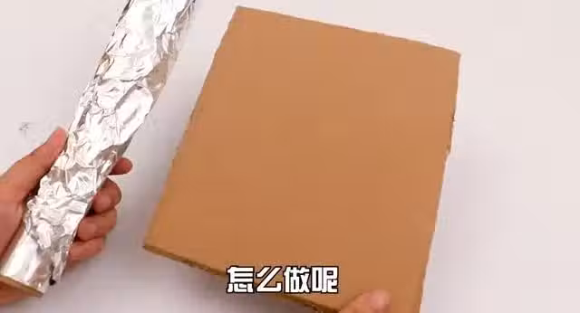 我們將這個紙板放在錫箔紙上,然後呢用錫箔紙把整個紙板給它包起來,