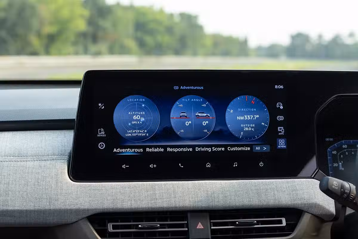 打開車門來到內裝,Mitsubishi Xforce 完全想像不到它是一輛 Mitsubishi,內裝非常科技感 + 高級,採用 Dual Tone 雙色配色,層次感十足。 具備現在最流行的雙連屏設計(8 寸全液晶儀表 + 12.3 寸娛樂主機),新設計多功能方向盤,數位化冷氣操控面板,精緻的中控台以及 Yamaha 高級音響等等,質感很好,也夠高級,科技感十足!