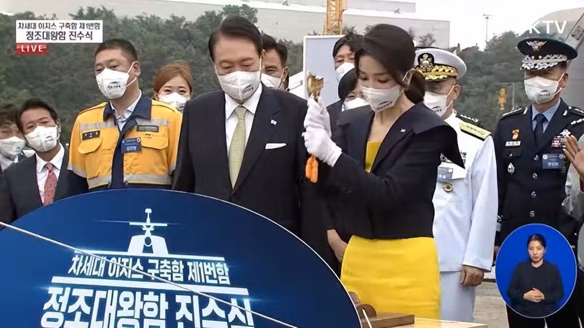 下水儀式上,韓國總統尹錫悅的妻子金建希親自用手斧切斷了與正祖大王相連的繩索。
