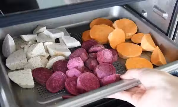 步驟5將紅薯、紫薯、香芋分別碾碎,壓成泥狀。