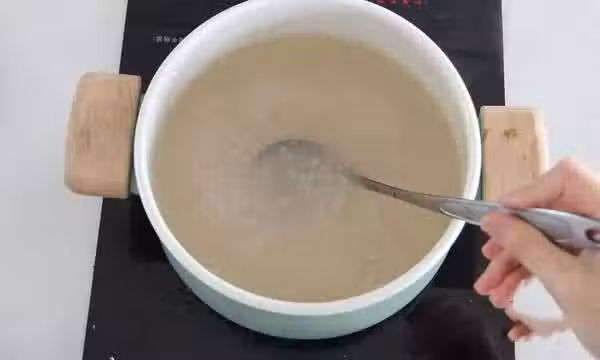 步驟14越煮水量越少,西米也越來越透明,這就是快煮好了。一般煮15分鐘左右就可以關火了。關火後蓋上蓋子,燜8-10分鐘左右。燜好後打開蓋子,撈起西米,用涼水沖一下。放一邊待用。 注意:如果發現燜好的西米還是有白心,說明沒有完全煮好。再開火接著煮幾分鐘燜幾分鐘就可以了。