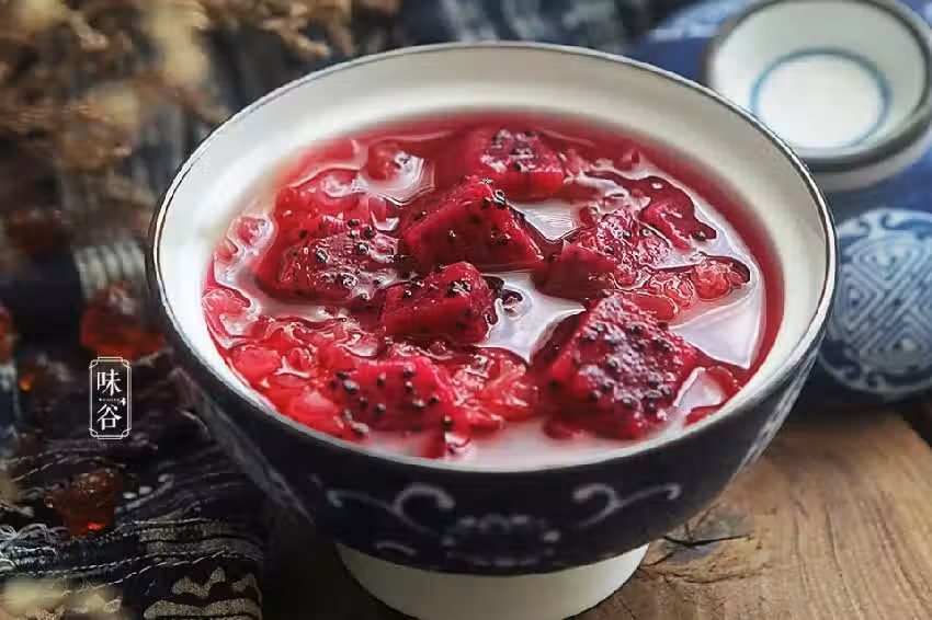 加了火龍果的銀耳羹,不但顏色漂亮,還酸甜美味,給銀耳湯中添加了一絲清爽,很不錯哦!