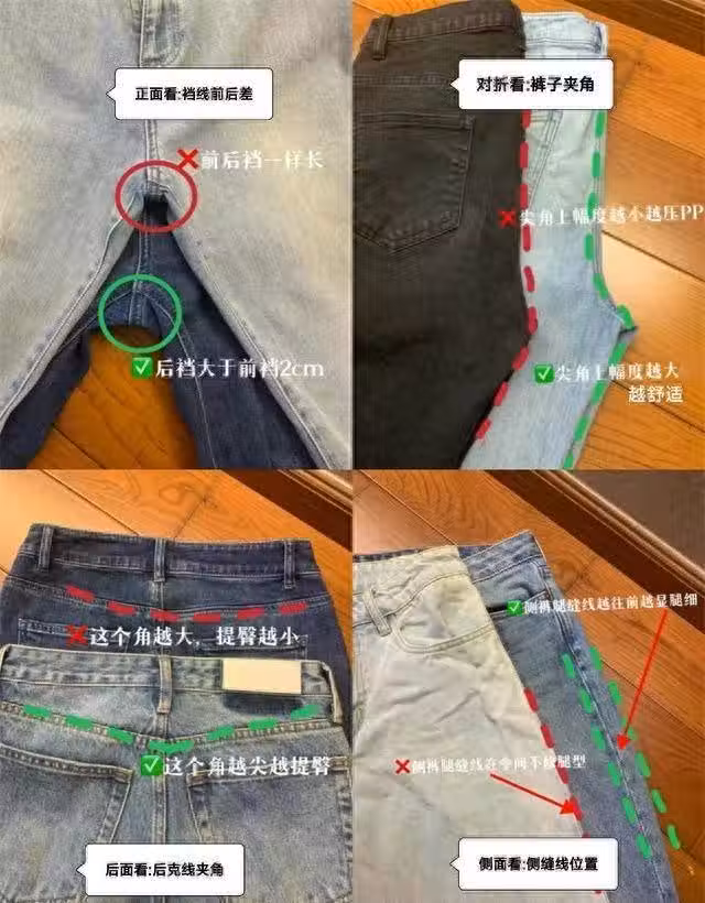 ①走線明顯的褲子要選對襠線、側縫線和臀線