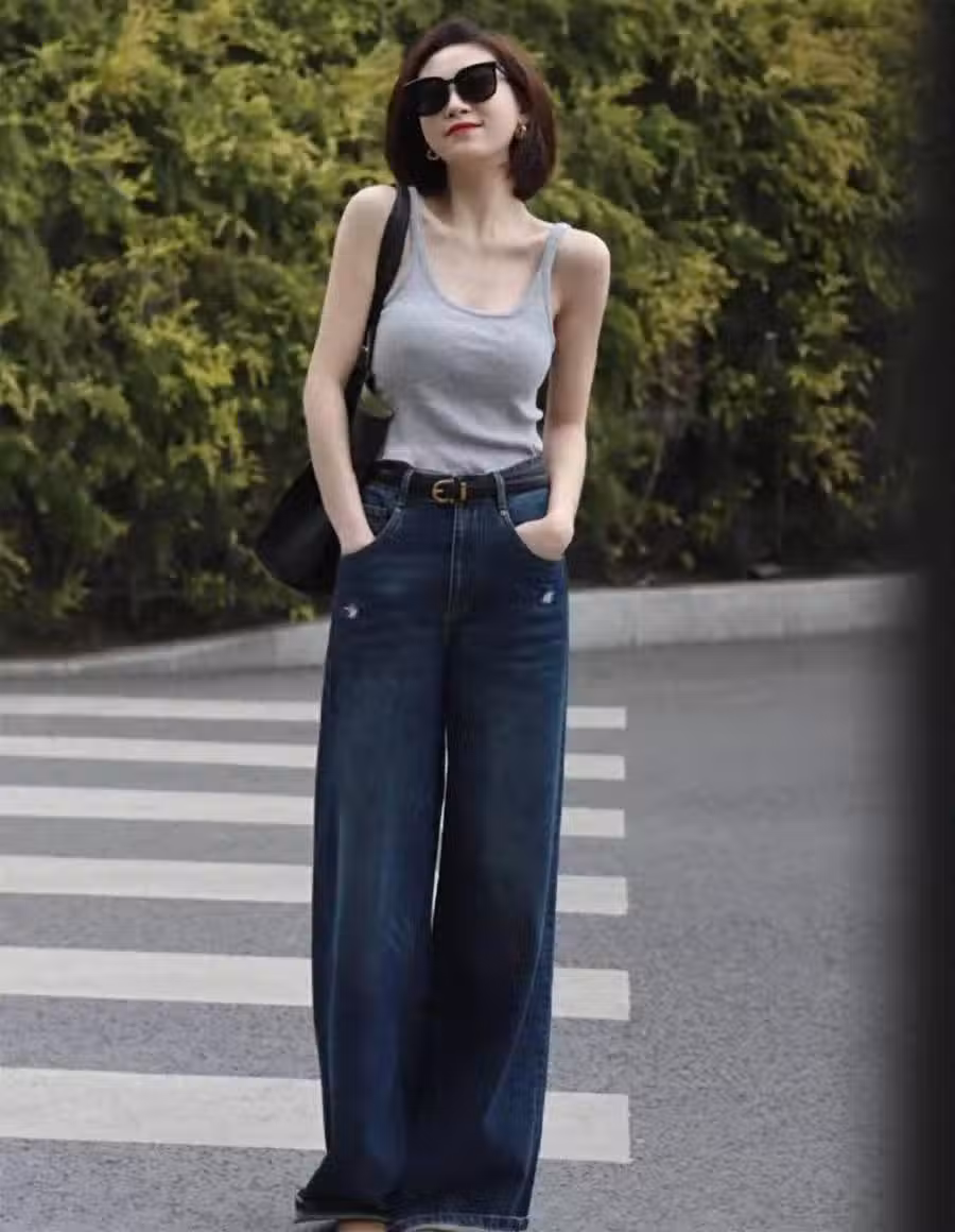 「上深下淺」的配色公式,還是非常符合穿衣需求的,並且還能夠提升個人品味跟穿衣功底。淺色調的闊腿褲,穿在身上還非常輕盈,再搭配上一雙白色帆布鞋,舒適感十足!