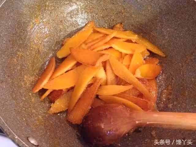 煮到湯汁收干如圖,甚至很難翻面,黏在一塊兒,那就對了。湯汁一定要收到很乾很乾,甚至橙皮有點焦黃如圖才夠,嘗嘗味道,我不喜歡太甜,所以這個時候,又加了一個檸檬汁下去,要不要加,可以自己決定。加了以後再收干湯汁即可關火。