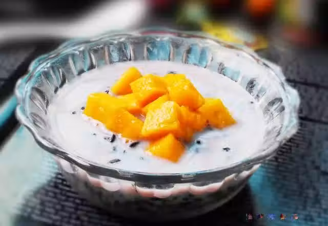4. 煮好的黑糯米稍晾凉,灑入白砂糖拌均勻。