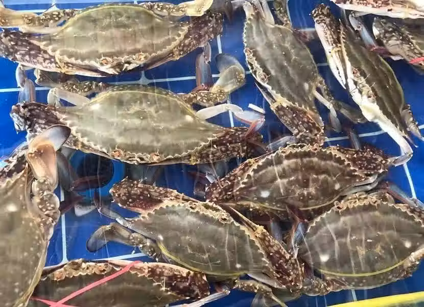 第五種,螃蟹,秋風起,蟹腳肥。南方有大閘蟹,北方有梭子蟹,你最愛吃哪種呢?身為海邊人,必須愛吃梭子蟹,膏肥黃滿,蟹肉一口吃下去那叫一個過癮。開海後梭子蟹的價格也是便宜到感人,大個的才20元一斤,個頭較小的10元一斤,秋天常吃螃蟹可以滋補去秋燥,吃貨們有口福了。